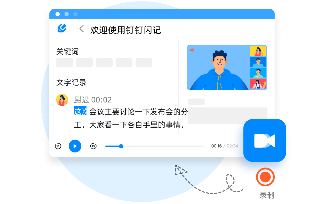 會中錄制,會后快速轉文字,云端保存音/畫/字,立體式記錄會議內容