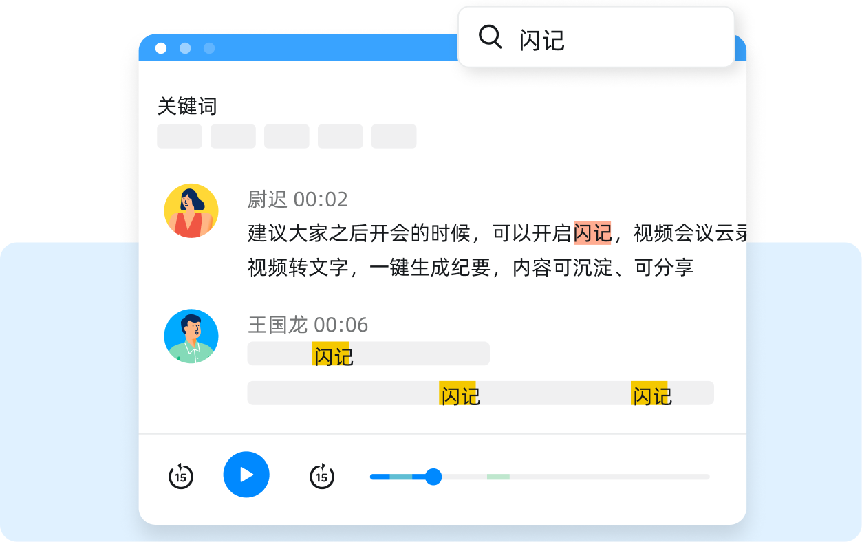 智能提煉會議關鍵詞,語音識別多位發言人,通過篩選、定位,提煉要點內容