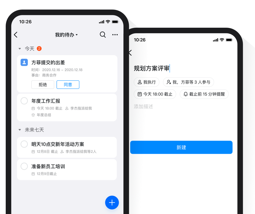 隨時隨地與團隊同步工作進展,不必反復追問,任務完成后會自動通知所有參與者。