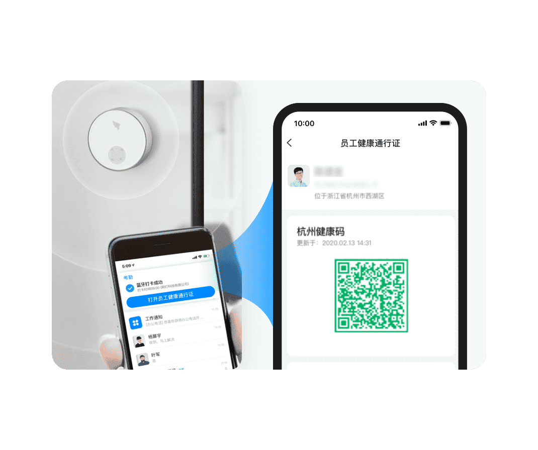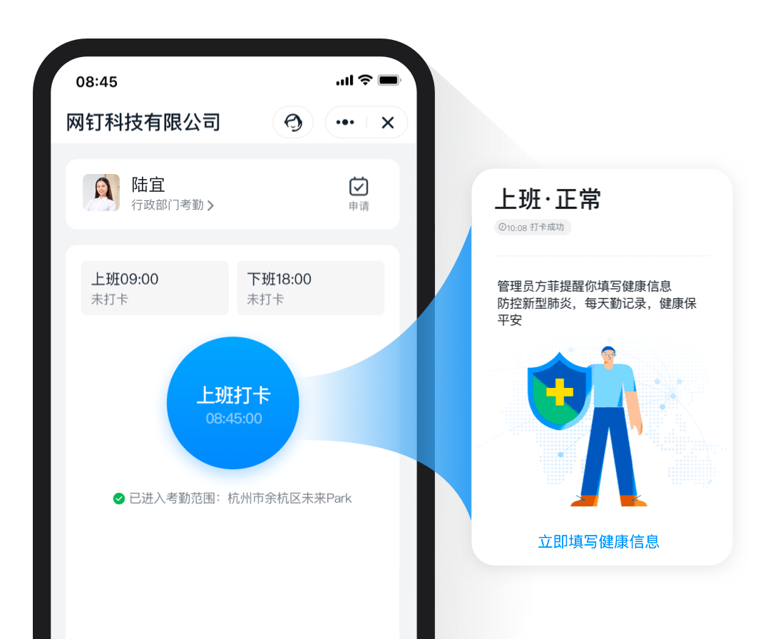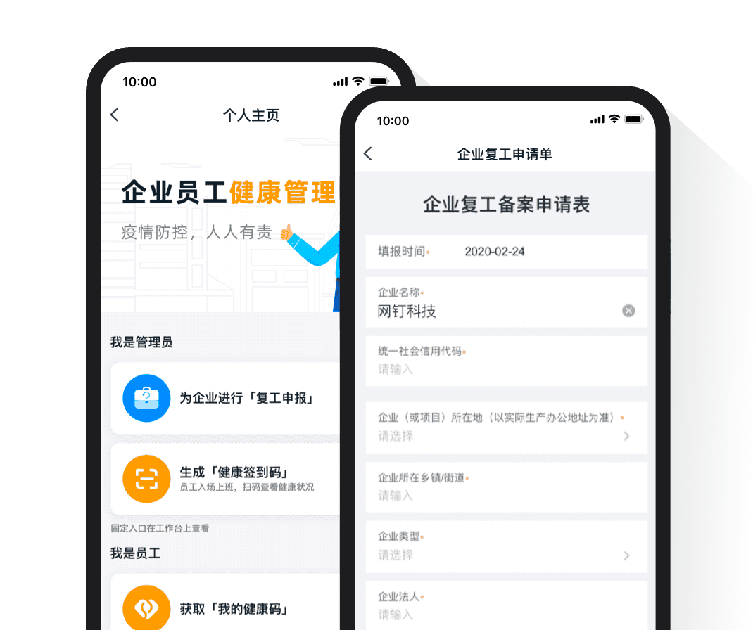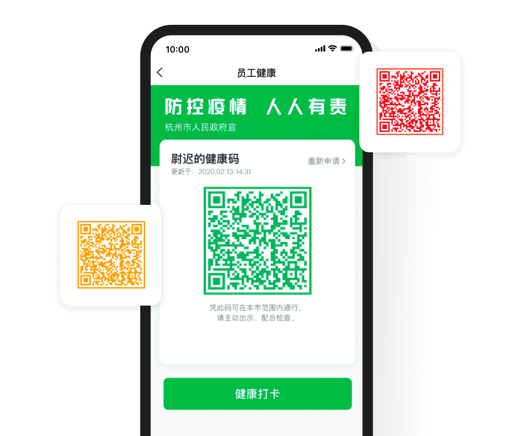 企業(yè)復工防疫員工填報返程信息,上報健康情況,返崗后通過健康碼"亮碼"通行,并使用無接觸考勤,保障安全復工。
