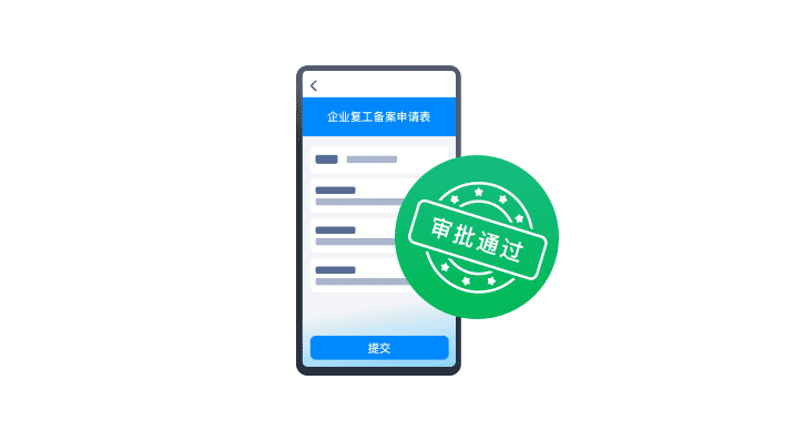 政府復工備案企業(yè)在線提交復工申請表,政府統(tǒng)一審核,復工更高效。